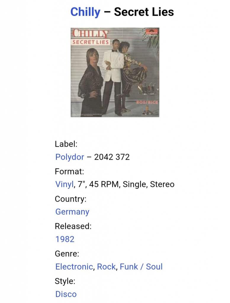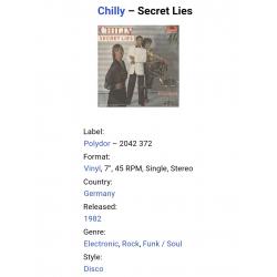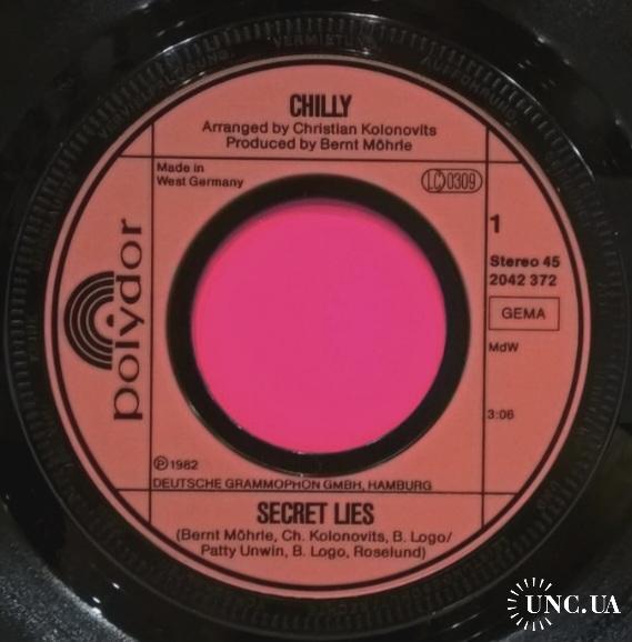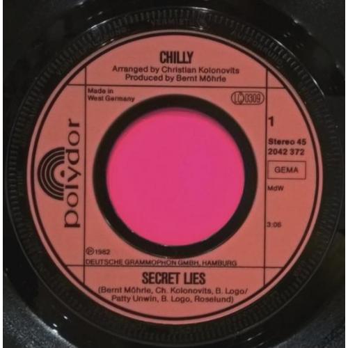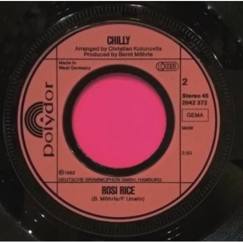 Вінілова платівка. Сьомий, в дискографії, студійний міні сингл (ЕР 7), Німецької диско поп групи Chilly, до складу якої, на той час, входили Уте Вебер, Бред Хауелл, Вернер Зюдхофф, Андреа Лінц, Софія Еіанго, Оскар Пірсон та їхній продюссер Бернт Морле (Secret Lies / Rosi Rice) 1982. Випуск фірми (Polydor) Germany, 1982-ий рік. Оригінальне, рідне, першопресове Німецьке видання. Стан платівки EX+. Стан конверту ЕХ+. Відправка по Україні службами доставки: Нова Пошта, Укр Пошта, Делівері. Також відправляємо посилки за кордон по цілому світу.
