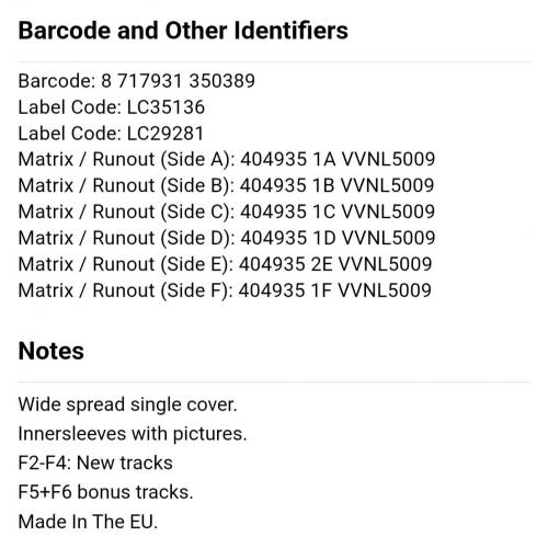 Система оцінки стану платівок проводяться по градації Record Collector, по 5-ти бальній системі: S/S (Новий, запакований вініл), M (5+) - новий, але розпакований вініл, NM (5), NM- (5-), EX+ (4+), EX (4), EX- (4-), VG+ (3+), VG (3), VG- (3-), G+ (2+). G (2].