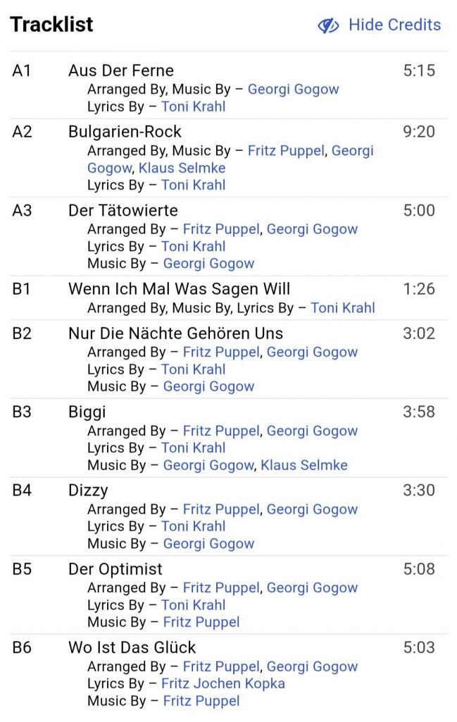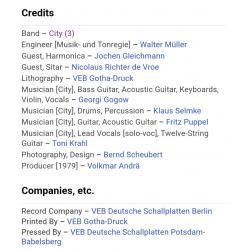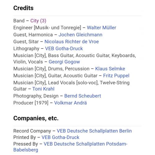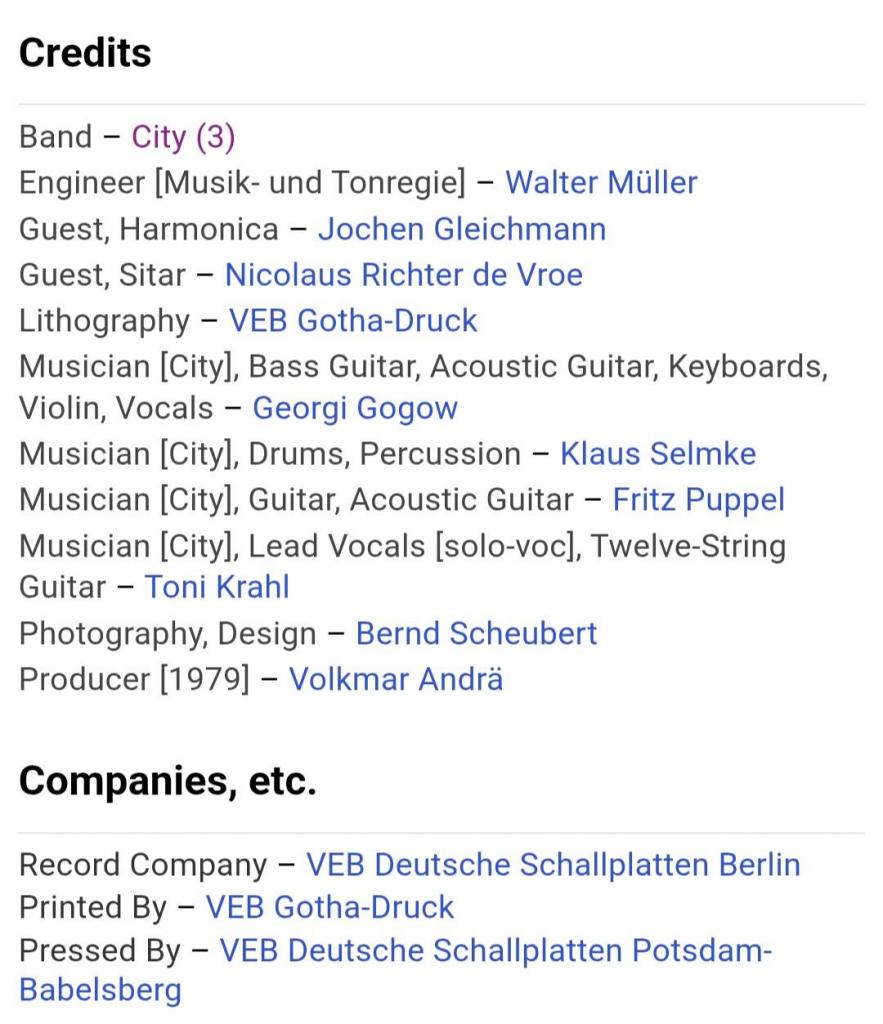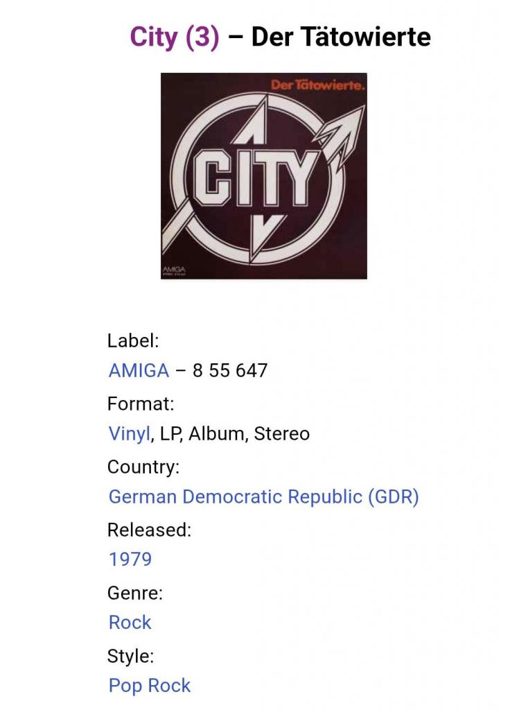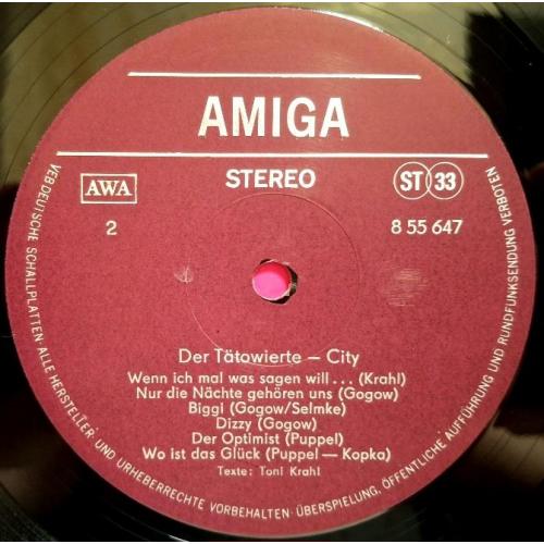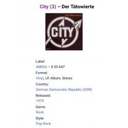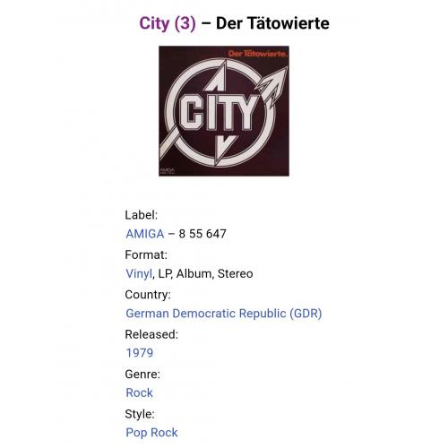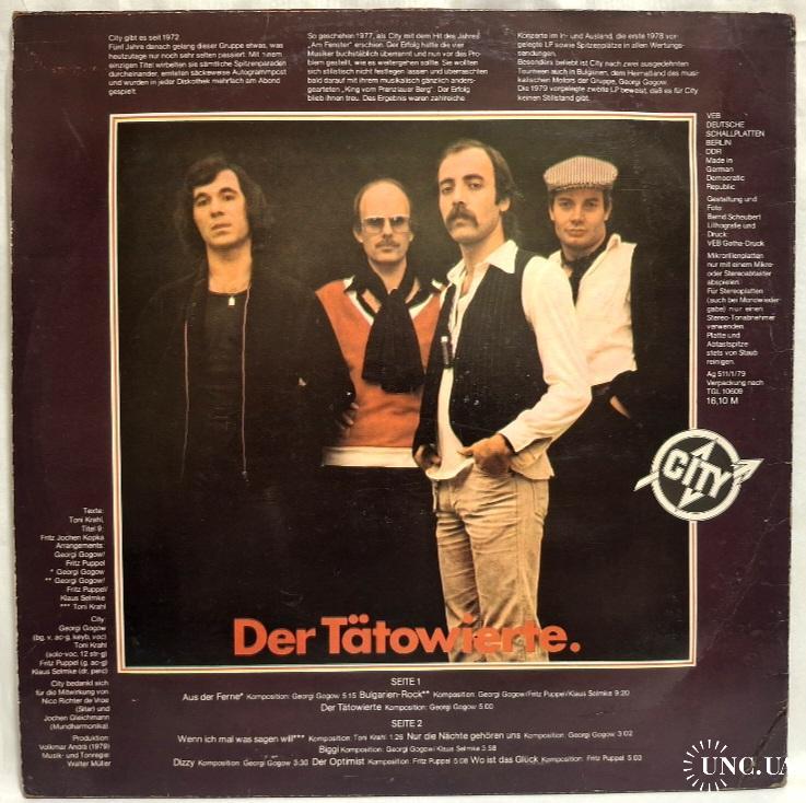 Вінілова платівка. Другий, в дискографії, студійний альбом, Німецької хард-рок, арт-рок, фольк-рок групи з Берліну, City, до складу якої, на той час, входили Джорджі Горов, Тоні Крахл, Клаус Селмке та Фріц Пуппел (Der Tatowierte) 1979. Випуск фірми (Amiga) Germany, 1979-ий рік. Оригінальне, першопресове, Німецьке видання. Стан платівки ЕХ+. Стан конверту EX+. Відправка по Україні службами доставки: Нова Пошта, Укр Пошта, Делівері. Також відправляємо посилки за кордон по цілому світу.