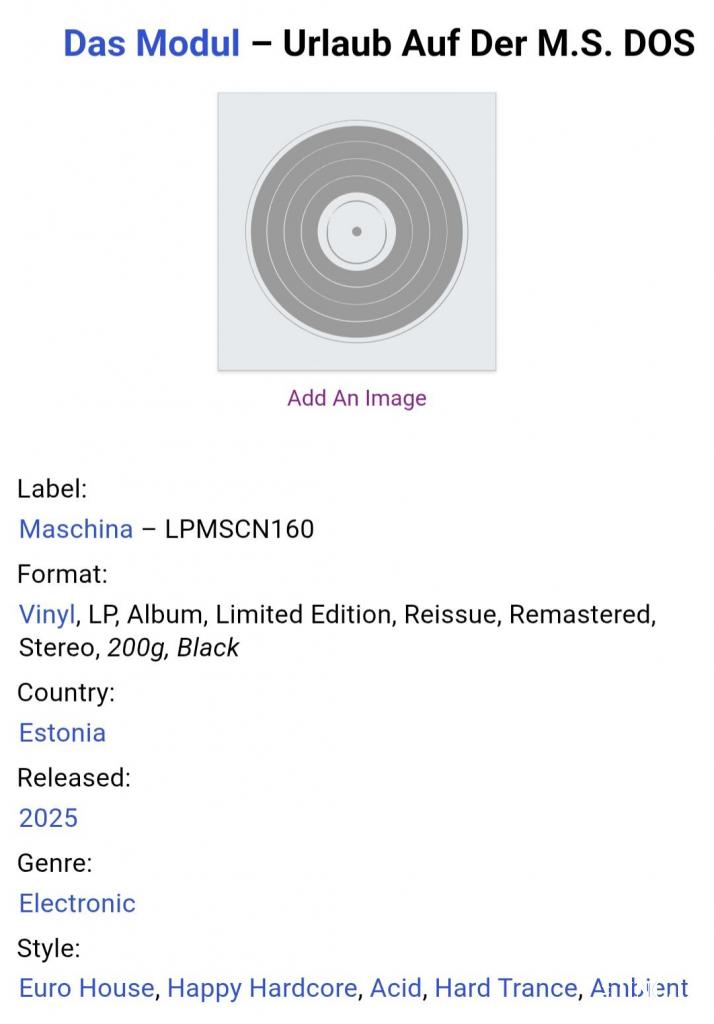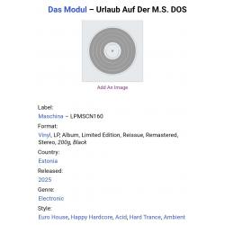 Вінілова платівка. Другий, в дискографії, студійний альбом Німецького проекту продюсерів Фелікса Гаудера та Олафа Роберто Боссі, лицем якого стали Ясмін Байсал та Дірк Шмідт працювавші в стилі хеппіхардкор, групи Das Modul (Urlaub Auf Der M.S. Dos) 1996. Випуск фірми (Maschina) Europe, 2025-ий рік. Лімітований тираж (Limited Edition). Видання нове, запаковане. Категорія S/S. Відправка по Україні службами доставки: Нова Пошта, Укр Пошта, Делівері. Також відправляємо посилки за кордон по цілому світу.
