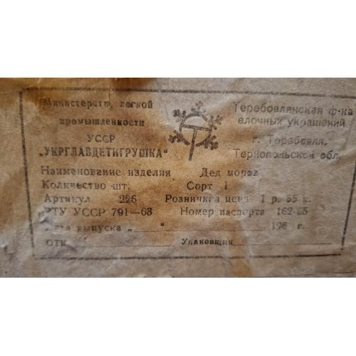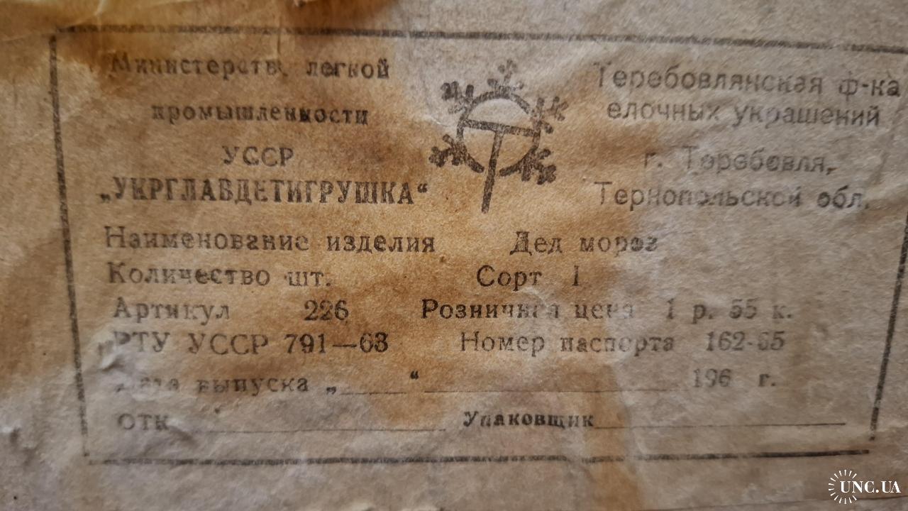 1941-1960Дед Мороз Вата Пластик ластик Ткань УССР Теребовля Хорошее состояние состояние Все на фото Высота 36 см