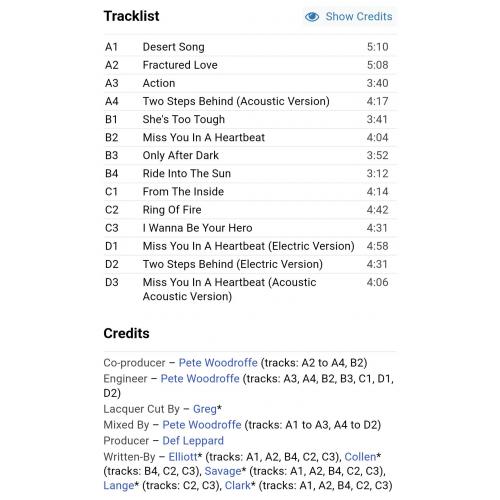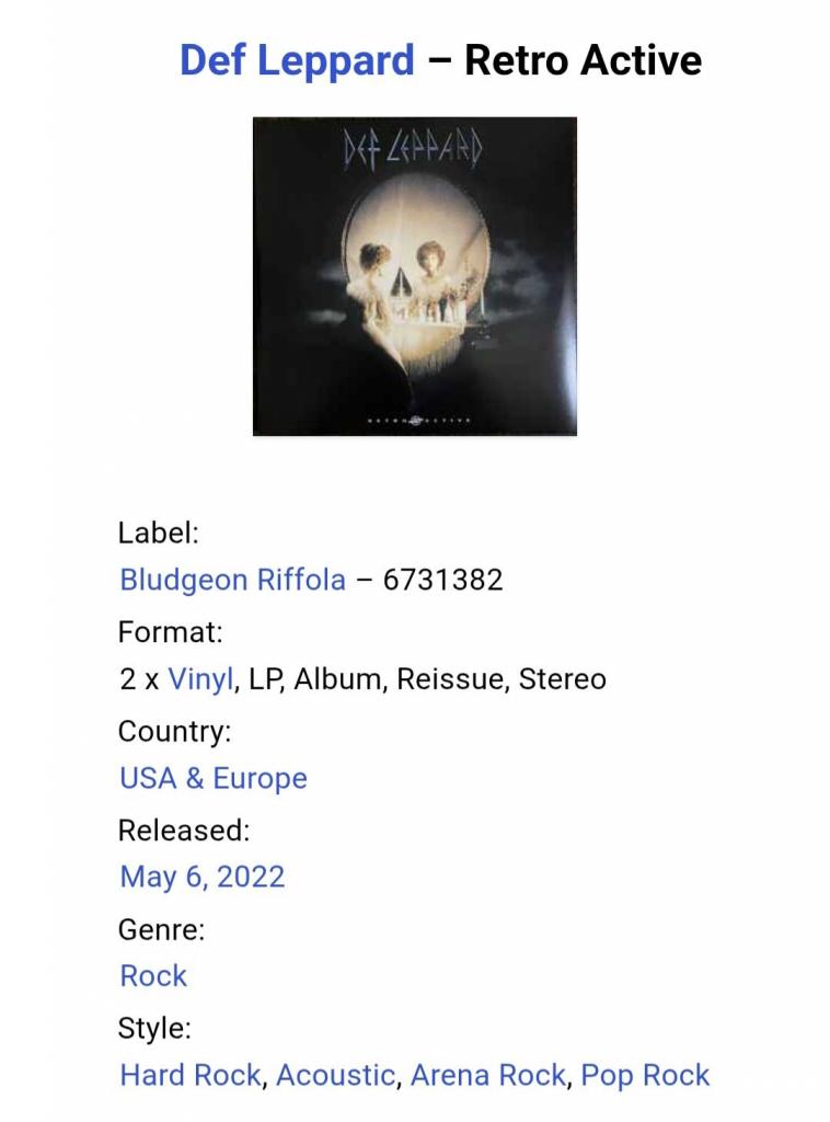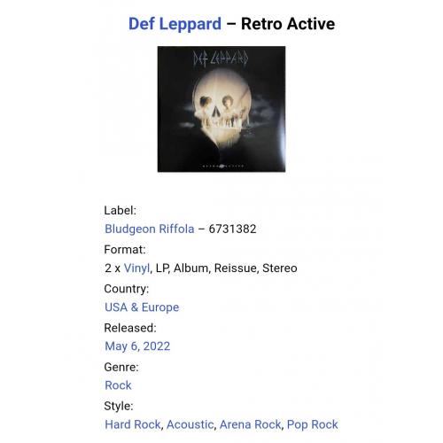 Вінілові платівки. Перша, в дискографії, студійна офіційна збірка найкращих хітів, Британської хард-рок, глем метал групи із Шеффілду, володарів титулу зали слави рок-н-ролу, діамантового сертифікату RIAA та книги рекордів гіннесу, Def Leppard, до складу якої, на той період часу, входили учасники Джо Елліот, Філ Коллен, Рік Севідж, Рік Аллен, Вівіан Кемпбелл, Стів Кларк та Піт Вілліс (Retro Active) 1993. Випуск фірми (Bludgeon Riffola) USA & Europe, 2022-ий рік. Видання з двох платівок (2LP). Лімітований тираж (Limited Edition). Нове, запаковане. Категорія S/S. Відправка по Україні службами доставки: Нова Пошта, Укр Пошта, Делівері. Також відправляємо посилки за кордон по цілому світу.