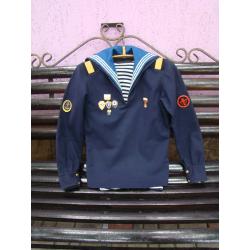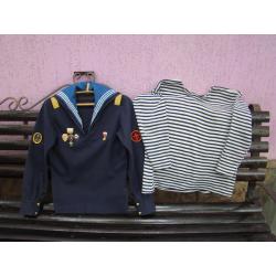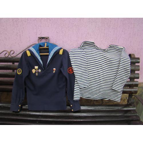 Тельняшка и фланка - зимний вариант. В общем фланка в хорошем состоянии как для ее лет, за исключением небольшого дефекта- на спине сзади под гюйсом есть залысина небольшого размера (на последнем фото показал). Знаки тяжелый и легкий металл. Знаки тяж.мет. Слава - Отличник ВМФ (заколка), Специалист 1 класса (заколка). Знаки легкий металл - Слава СА и ВМФ и Советским морякам слава, бегунок 2 ст. (все знаки на заколке). Знак ВЛКСМ двухсоставной, легкий и тяж.мет. (винт). Лычки на погонах металлизированные. Шеврон торпедист вышитый, старого образца. Шеврон с якорем дембельский. На гюйсе и фланке есть заводские штампы, но они сюда не поместились. Доп.фото по запросу. В остальном все как на фото.