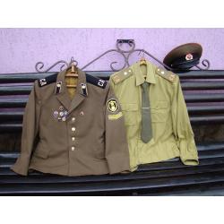 Все в хорошем состоянии. Размер кителя и рубашки 48 на рост до 170 см. Знаки Отличник СА, Специалист 1 кл.- тяж.мет., без дефектов. Знаки легкий металл- поплавок, воин-спортсмен, бегунок и Слава советскому воину, также без дефектов. Знак ВЛСКМ дембельский, двухсоставной, легкий и тяжелый металл, также в хорошем состоянии. На кителе шеврон и годичка дембельские, буквы на погонах металлические. На рубашке погоны дембельские, зажим на галстуке латунный. Размер фуражки 56. В остальном все как на фото.