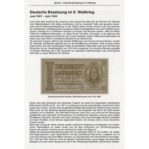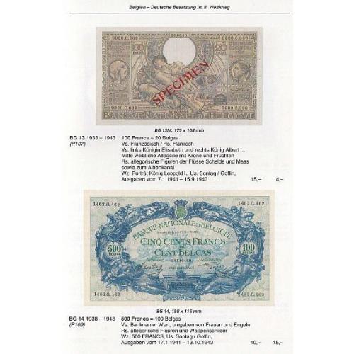Заграничные денежные знаки государств оккупированных Германией в ходе Первой и Второй Мировых Войн. Рассмотрены как выпуски подконтрольные германским властям, в т.ч. оккупационные, так и собственные выпуски государств. Цветные иллюстрации. Цены в евро, для двух состояний банкнот