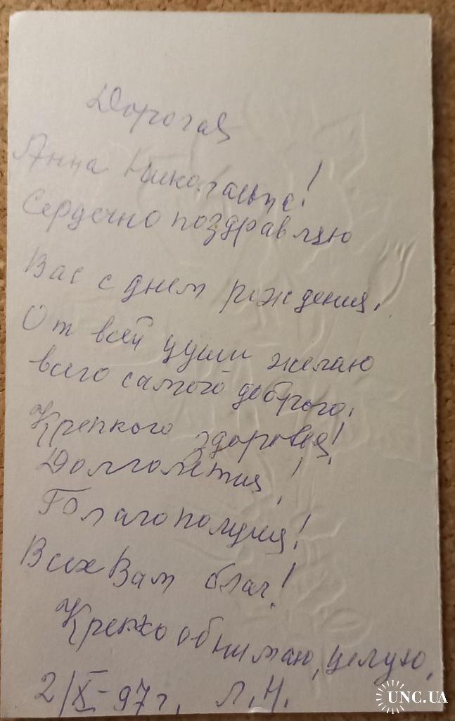 Карточка изготовлена на матовой мелованной бумаге с блинтовым тиснением. Без дефектов. Состояние отличное.
