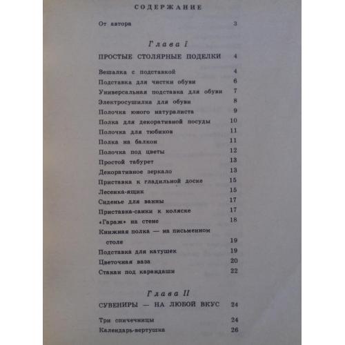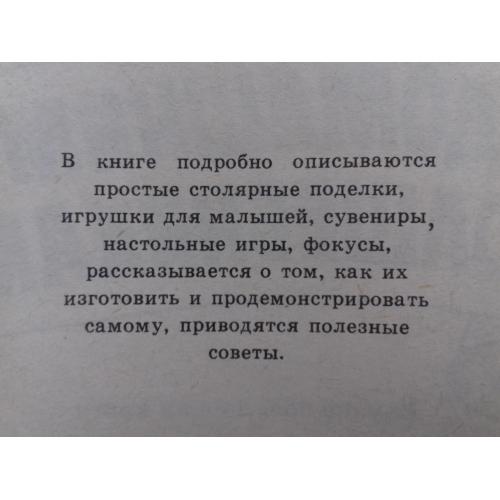 Описаны простые столярные поделки, изготовление игрушек для малышей, сувениров, настольных игр, фокусов.