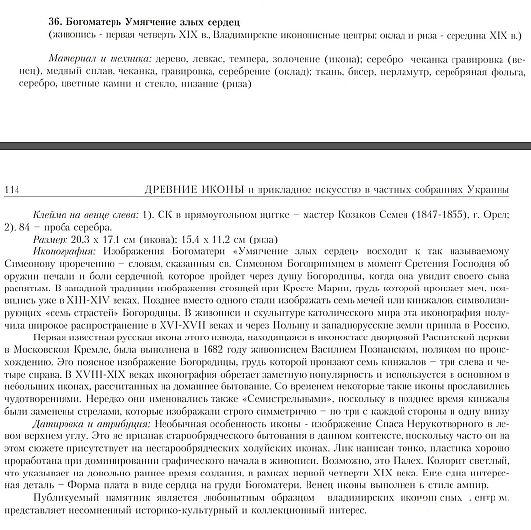 В научной части каталога ведущими учеными с мировым именем проведен обзор развития иконописи от начала XVII века до 1928 года, а прикладного искусства - с XII по ХХ вв.