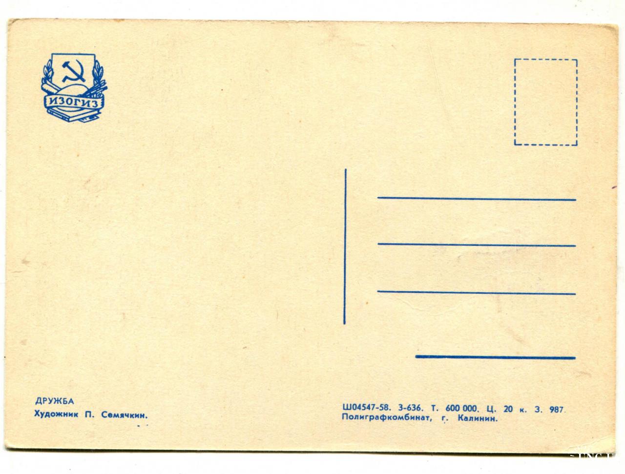 1941-1960"Дружба". Худ. Семячкин. 1958 г. Изд. Кишинев.