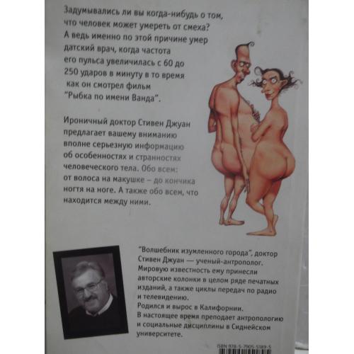Доктор Стивен Джуан - "волшебник странностей", ученый, преподаватель, журналист и антрополог. В книге "Странности нашего тела" он раскрывает многочисленные тайны человеческого существа. Сверху донизу, снаружи и изнутри, справа и слева - весь наш организм - это сплошная загадка. Рождение и смерть, несчастный и счастливый случай, реальность заболеть и возможность выжить в критической ситуации, как мы устроены - все, что вы хотели бы узнать о своем теле, и даже то, о чем вы и не догадываетесь, и не задумываетесь, объясняет на страницах своей книги доктор Стивен Джуан. Карлики и великаны, редчайшие генетические аномалии, развенчание или утверждение распространенных суждений, проблемы болезни и долголетия - как много всего вмещает эта книга! Автор то серьезно, то с юмором отвечает на любые вопросы читателей, даже на самые наивные или глупые