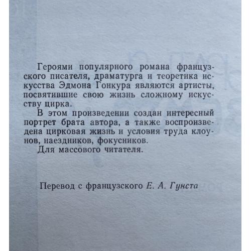В романе «Братья Земгано» писатель с поразительным проникновением описывает природу и состояние человека (режиссера или артиста), рожденного для цирка. 25 октября 1878 года Эдмон де-Гонкур записал в своем дневнике: «Мне следовало бы приняться за роман о клоунах, так как в настоящее время мой ум находится в смутном и зыбком состоянии, как раз соответствующим подобному произведению, несколько выходящему за пределы абсолютной реальности». В устах натуралиста это звучит отступничеством.