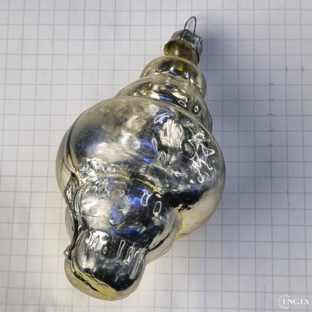 Вінтажна скляна ялинкова прикраса у формі морської мушлі.