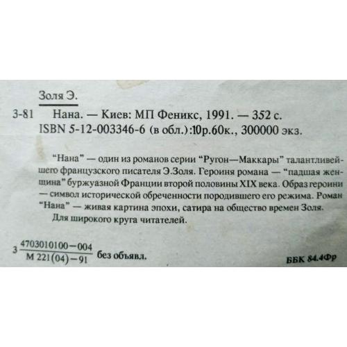 Эмиль Золя. НАНА. Киев, МП Феникс. Изд.1991 г. 352 страницы Вопросы до покупки Оплата на карту ПБ ДОСТАВКА Укрпочта, Новая почта, самовывоз, Meest |