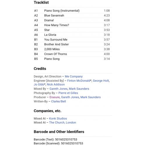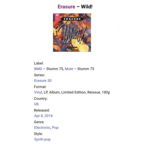1981-2000Вінілова платівка. Четвертий, в дискографії, студійний альбом, Британського електронного сінті поп дуету Erasure, який складається з виконавців Вінса Кларка та Енді Бела (Wild!) 1989. Випуск фірми (BMG / Mute) UK, 2016-ий рік. Лімітований тираж (Limited Edition). Видання нове, запаковане. Категорія S/S. Відправка по Україні службами доставки: Нова Пошта, Укр Пошта, Делівері. Також відправляємо посилки за кордон по цілому світу.