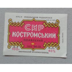 Этикетка - ПЛАВЛЕНИЙ СИР КОСТРОМСКОЙ ПОДІЛЛЯ УССР
