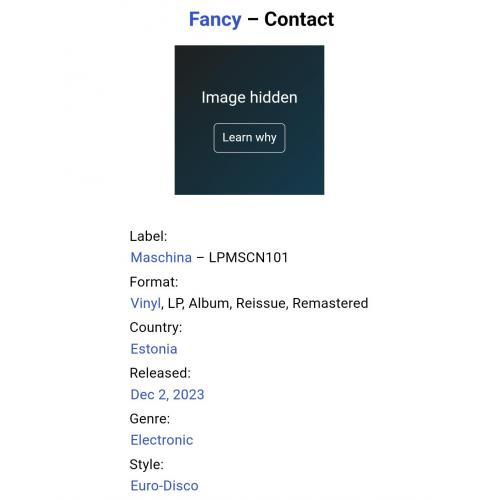 1981-2000Вінілові платівки. Другий, в дискографії, студійний, альбом Німецького євро диско виконавця, Манфреда Алоїс Зегіта, більше відомого під сценічним ім,ям Fancy (Contact) 1986. Випуск фірми (Maschina) Estonia, 2023-ій рік. Видання нове, запаковане. Категорія S/S. Відправка по Україні службами доставки: Нова Пошта, Укр Пошта, Делівері. Також відправляємо посилки за кордон по цілому світу.