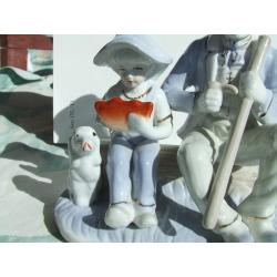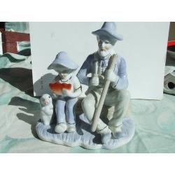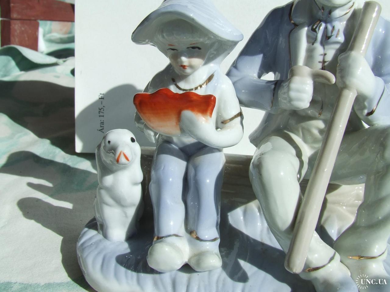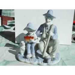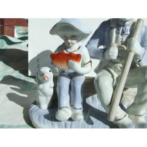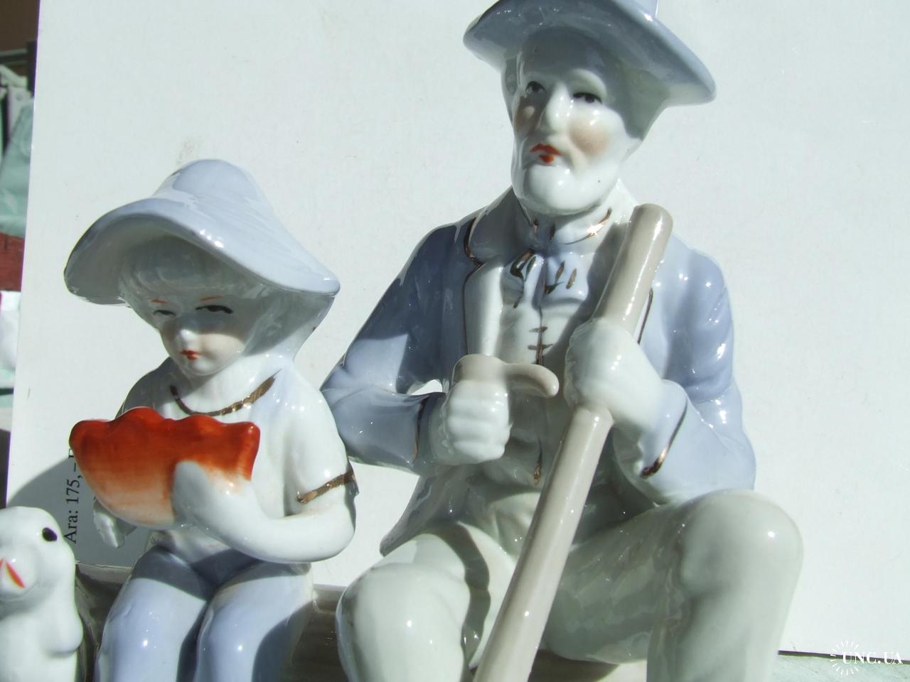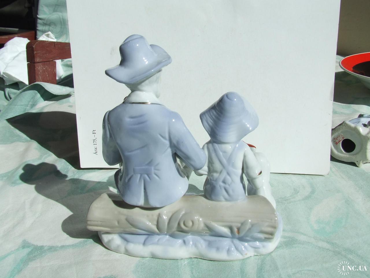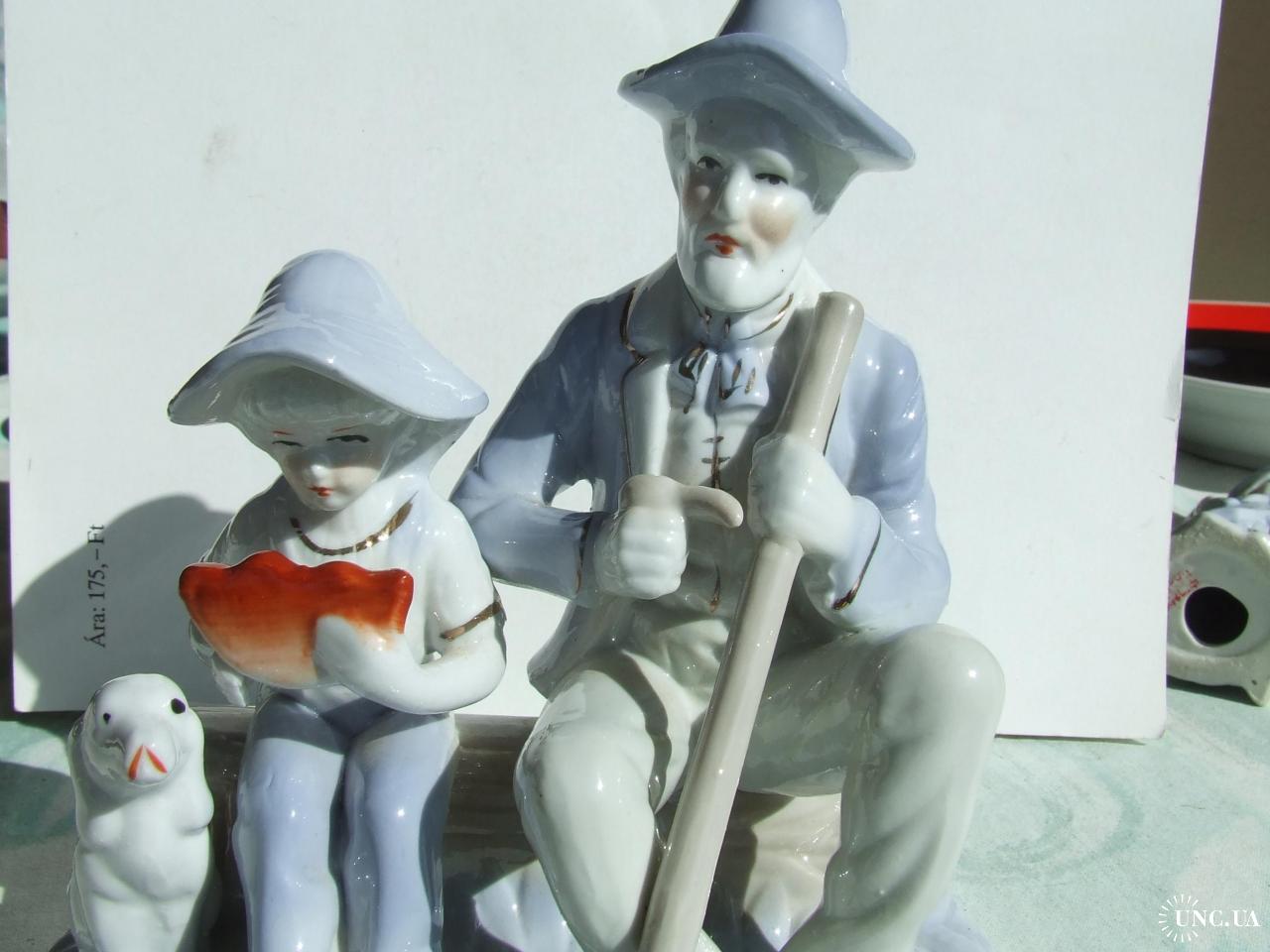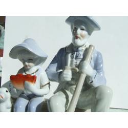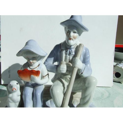 Фарфор дід з внуком роз. 18 х 18х 10 см. 1990 роки. ручний розпис.