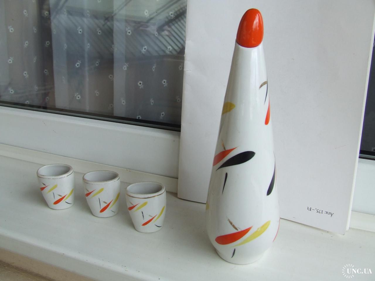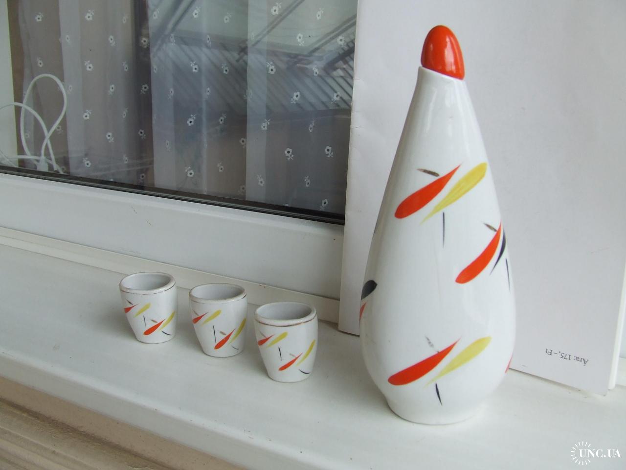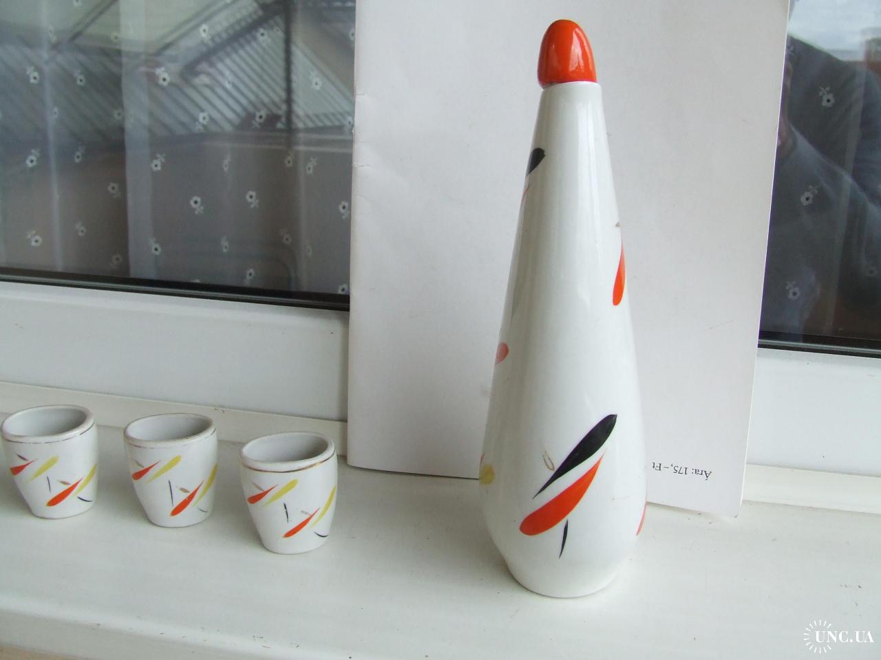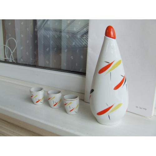 Фарфор лікеро-водочний набір роз. 24 х 10 см. 1970 роки ЗХК ссср. + 3 стаканчики.