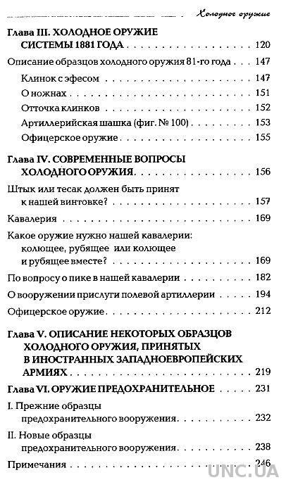 Основоположник отечественной школы автоматического оружия, конструктор первого русского автомата, научный руководитель Дегтярева, Шпагина и Симонова, В.Г. Федоров в 1905 году издал этот классический труд - подробнейшее описание как холодного, так и "предохранительного" оружия русской и иностранных армий (штыков, шашек, сабель, палашей, касок, кирас, панцирей и т.п.).