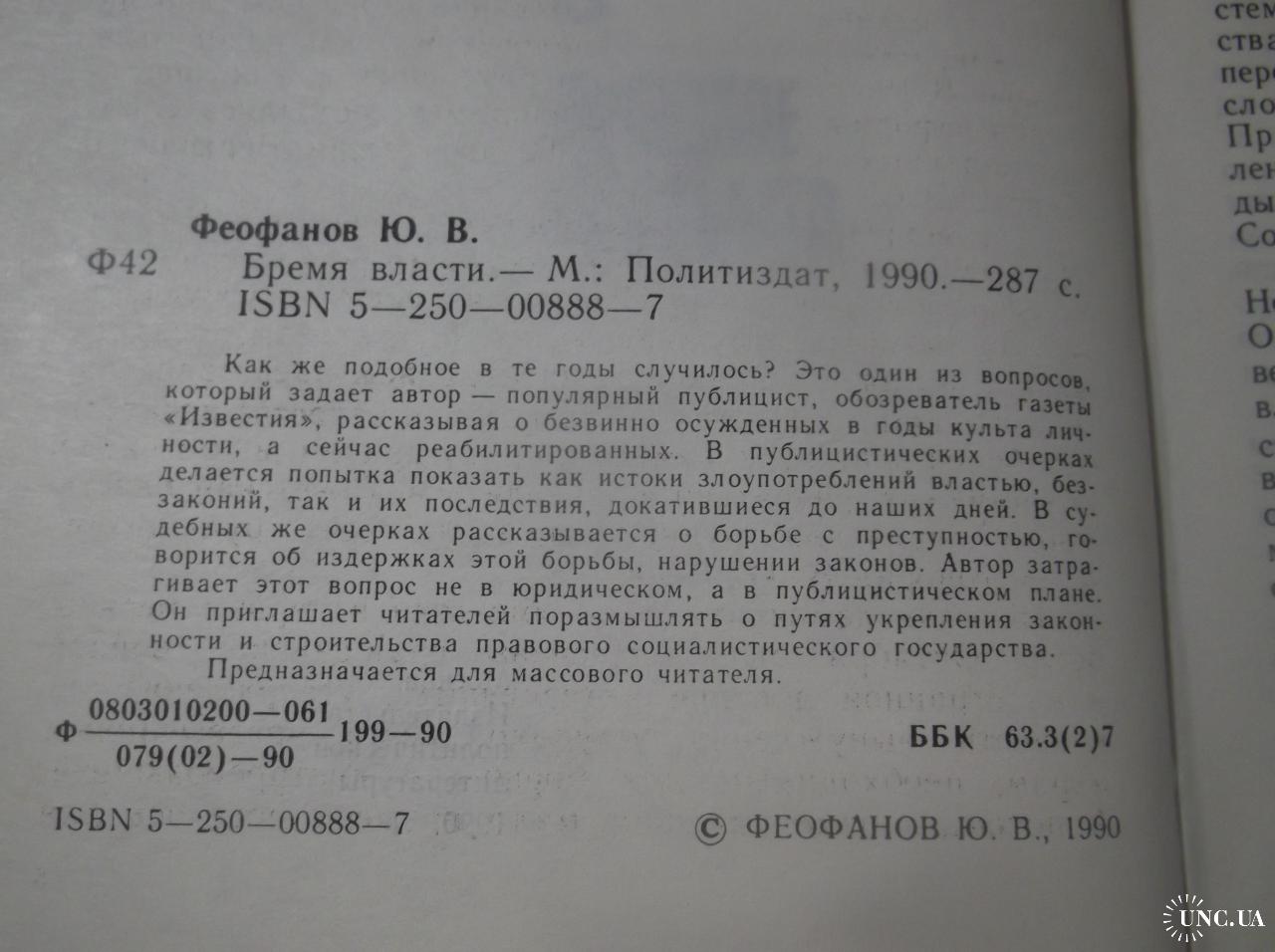 Феофанов. Бремя власти. Политиздат. 1990 год. Состояние новой книги!