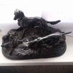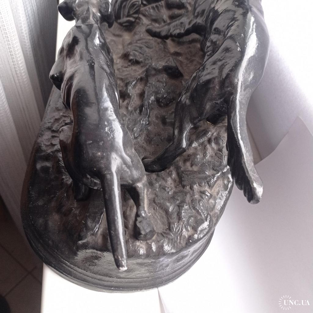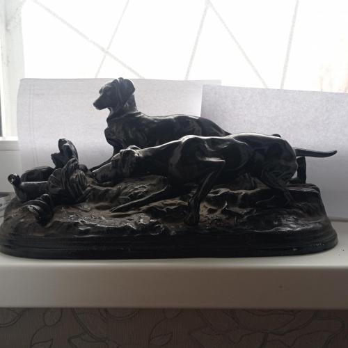 Фигура чугун Касли 1957 год Две собаки охота на птицу статуэтка высота 20 см, длина 39 см