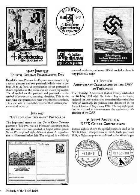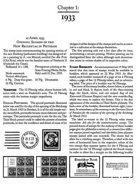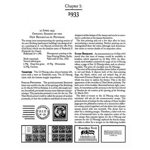 Книга содержит расширенную информацию по маркам, открыткам, почтовым карточкам и штемпелям 3 рейха периода 1933-1945 г., разбитую по годам.