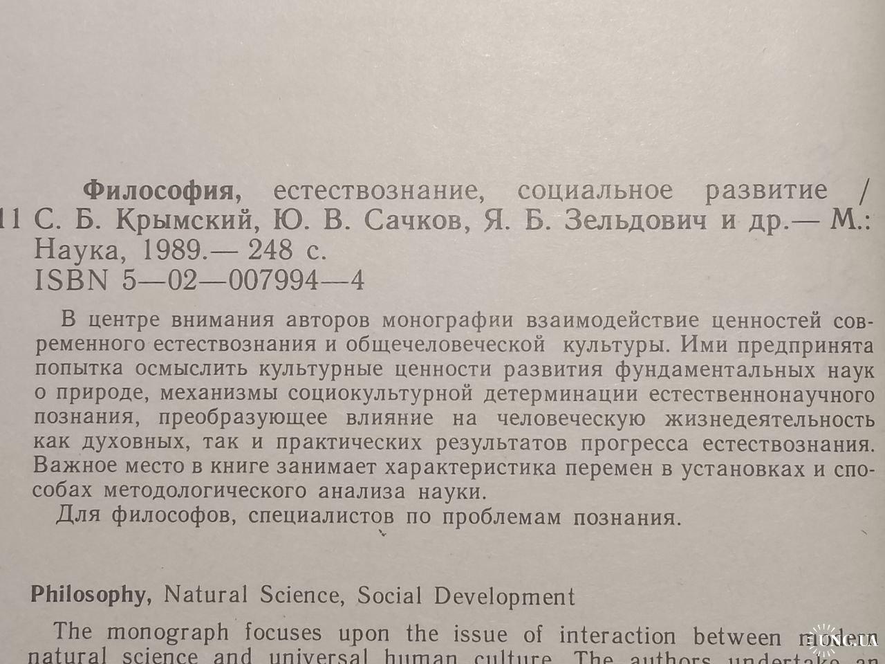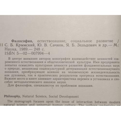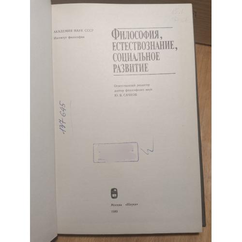 Философия, естествознание, социальное развитие. Наука. 1989 год.