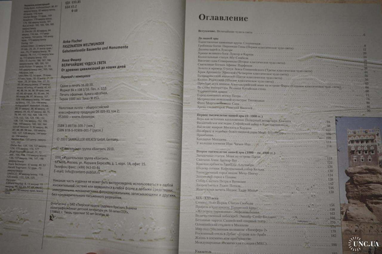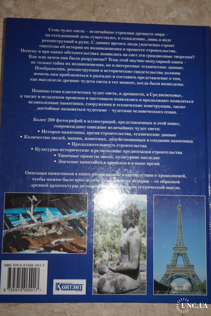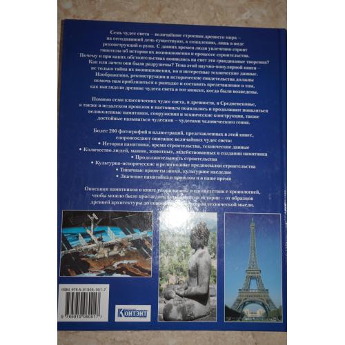 Тираж 1000 экз. Семь чудес света - величайшие строения древнего мира - на сегодняшний день существуют, к сожалению, лишь в виде реконструкций и руин. С давних времен люди увлеченно строят гипотезы об истории их возникновения и процессе строительства. Почему и при каких обстоятельствах появились на свет эти грандиозные творения? Как или зачем они были разрушены? Тема этой научно-популярной книги - не только тайна их возникновения, но и интересные технические данные. Изображения, реконструкции и исторические свидетельства должны помочь нам приблизиться к разгадке и составить представление о том, как выглядели древние чудеса света в тот момент, когда были возведены. Помимо семи классических чудес света, в древности, в Средневековье, а также в недалеком прошлом и настоящем появлялись и продолжают появляться великолепные памятники, сооружения и технические конструкции, также достойные называться чудесами - чудесами человеческого гения. Более 200 фотографий и иллюстраций, представленных в этой книге, сопровождают описание величайших чудес света: - История памятника, время строительства, технические данные . - Количество людей, машин, животных, задействованных в создании памятника . - Продолжительность строительства . - Культурно-исторические и религиозные предпосылки строительства. - Типичные приметы эпохи, культурное наследие. - Значение памятника в прошлом и в наше время. Описания памятников в книге упорядочены в соответствии с хронологией, чтобы можно было проследить путь развития истории - от образцов древней архитектуры до современных шедевров технической мысли.