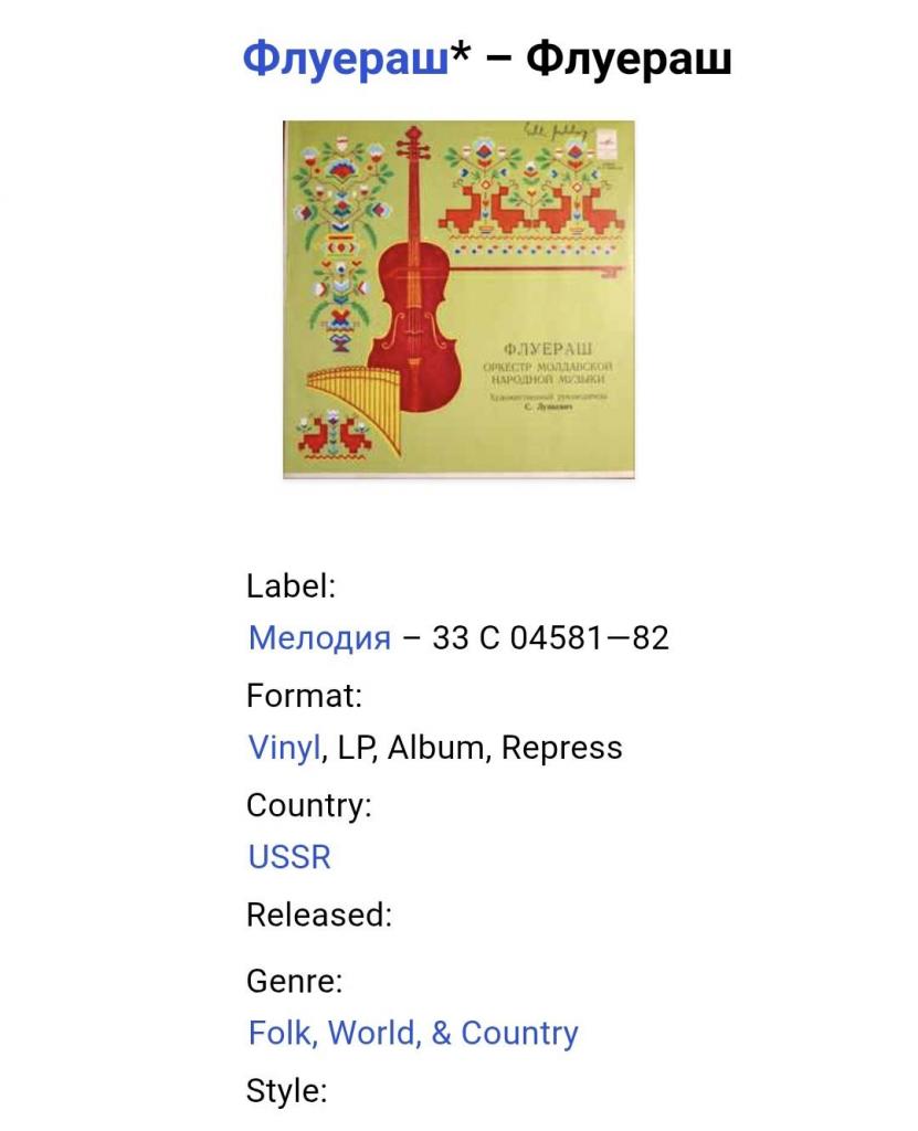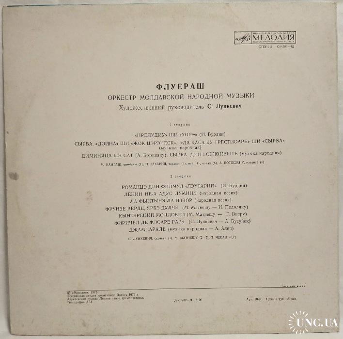 Вінілова платівка. Студійний альбом Молдавського (Радянського) Оркестру Народної Музики, Флуераш, керівником якого був С. Лункевич (Оркестр Молдавской Народной Музыки) 1973. Випуск фірми (Мелодія) СРСР, заводом грамплатівок Апрєлєвського Ордена Леніна, 1980-ий рік. Рідкісне видання (Rare). Лімітований тираж (Limited Edition). Стан платівок ЕХ+. Стан конверту ЕХ+. Відправка по Україні службами доставки: Нова Пошта, Укр Пошта, Делівері. Також відправляємо посилки за кордон по цілому світу.