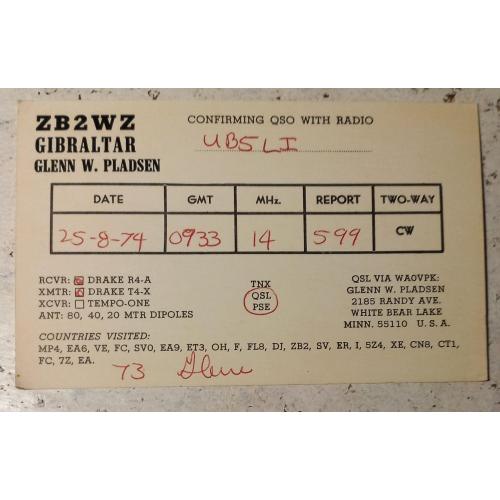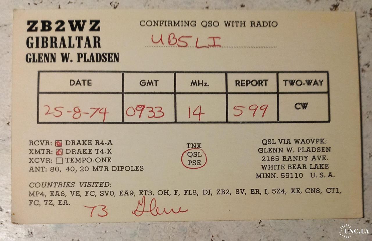 Дизайн открытки является индивидуальным для данного радиолюбителя. На лицевой стороне размещен его позывной сигнал. На обратной стороне указана его домашняя локация. Он американец из штата Миннесота, США. Также указаны данные радиообмена. Из данных видно, что он работает телеграфным ключом (азбука Морзе).Ниже приведены префиксы тех стран, которые он посещал и выходил в эфир. Радиолюбительские префиксы являются началом позывных-сигналов по международной классификации и однозначно определяют страну мира. Карточка без дефектов. Состояние идеальное.