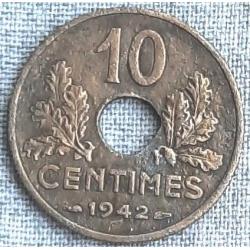 Франція 10 сантимів 1942 Німецька окупація Уряд Віші