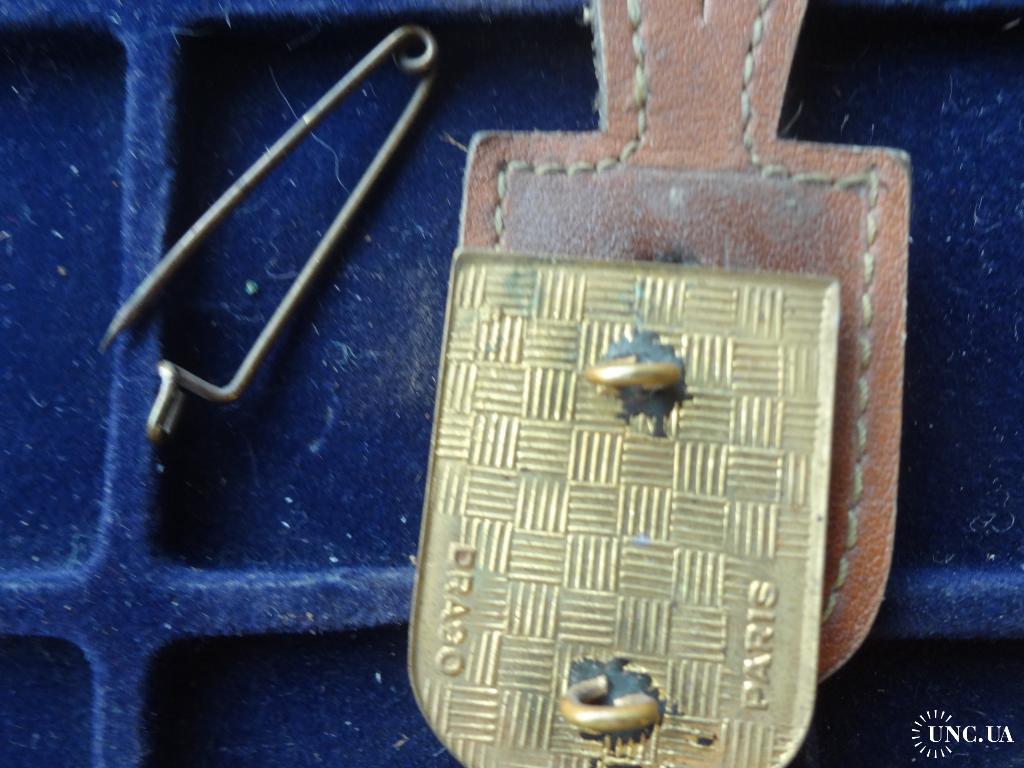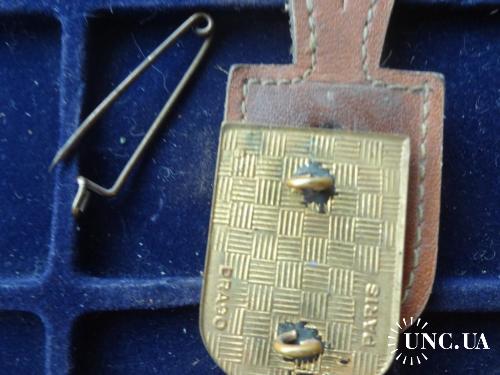 Материал и техника изготовления: бронза, эмаль, позолота, кожаная клипса.