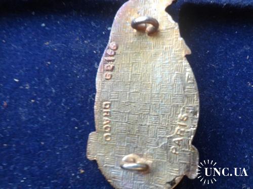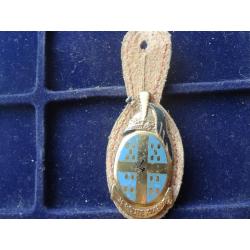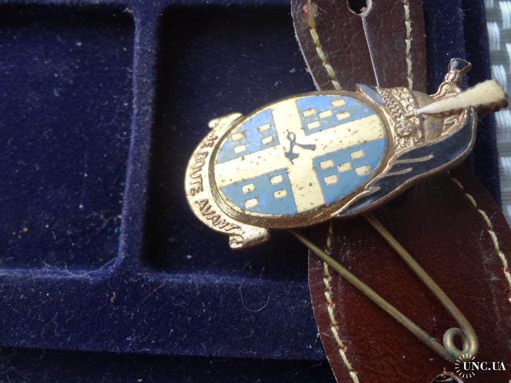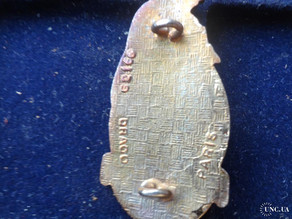 Материал и техника изготовления: бронза, эмаль, позолота, кожаная клипса.