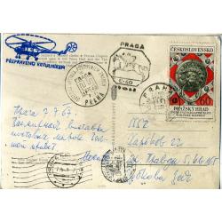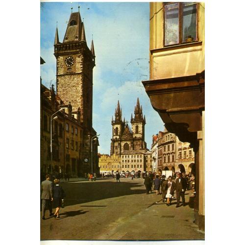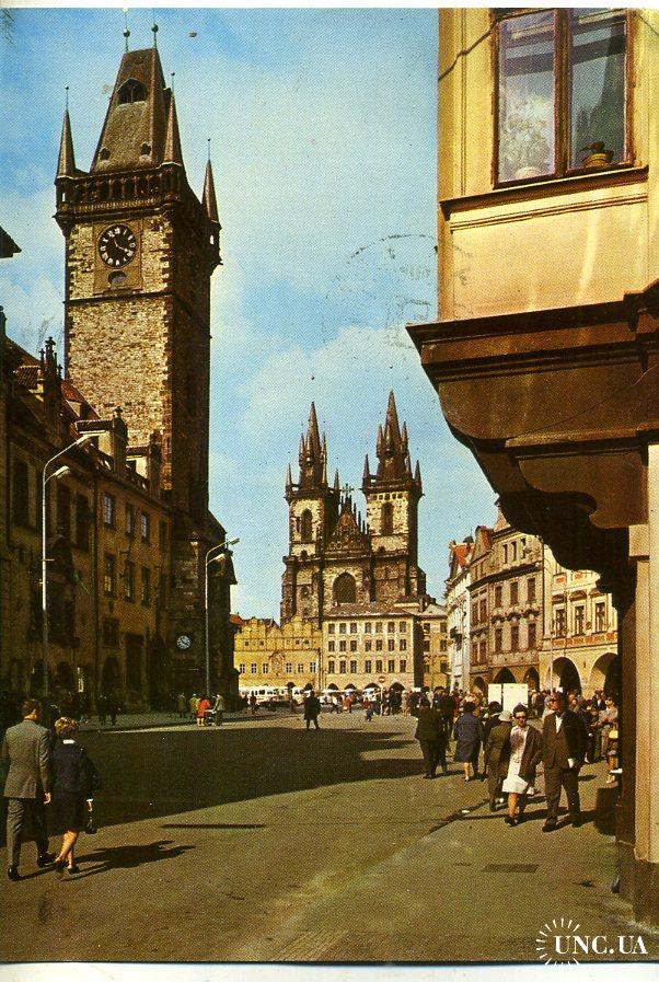 гашение Вертолетная почта Прага на открытке Прага ратуша Старого города прошла почту в Харьков 1968