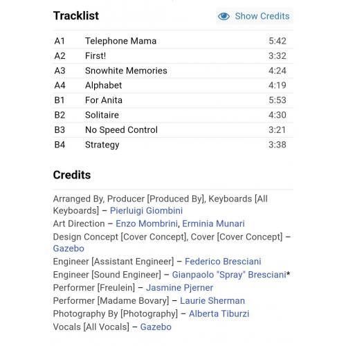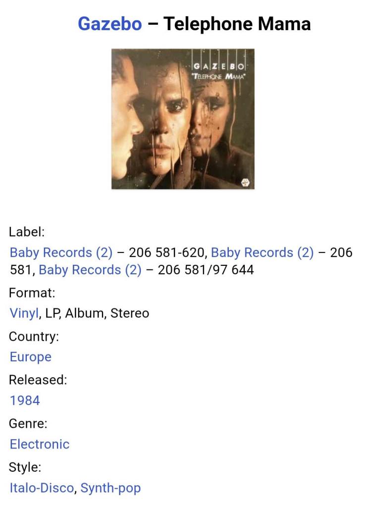 Вінілова платівка. Другий, в дискографії, студійний альбом Італійського виконавця Ліванського походження, стилю італо диско, євро диско, Пола Мадзоліні, більше відомого під сценічним ім'ям Газебо (Telephone Mama) 1984. Випуск фірми (Baby Records) Europe, 1984-ий рік. Оригінальне, першопресове, Європейське видання. Стан платівки ЕХ+. Конверт глянцевий. Стан конверту ЕХ+. В комплекті внутрішня вставка (OIS). Відправка по Україні службами доставки: Нова Пошта, Укр Пошта, Делівері. Також відправляємо посилки за кордон по цілому світу.