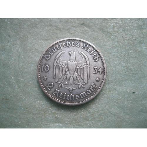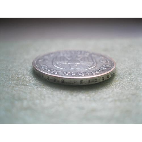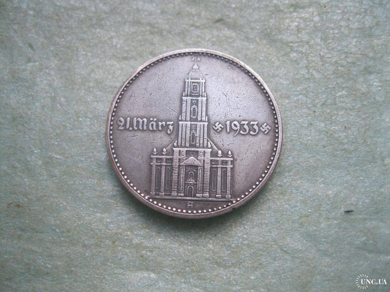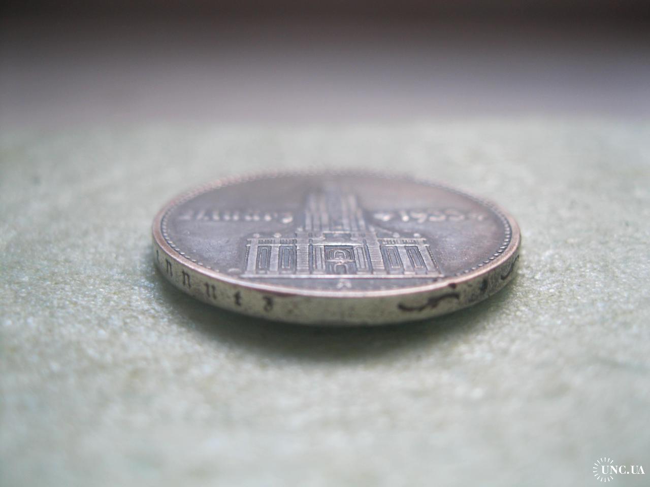 ОригіналГЕРМАНИЯ.2 Марки 1934 г А, Кирха с датой 1933 г. ТРЕТИЙ РЕЙХ. Серебро.Оригинал. (2).У монеты красивый гурт.