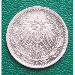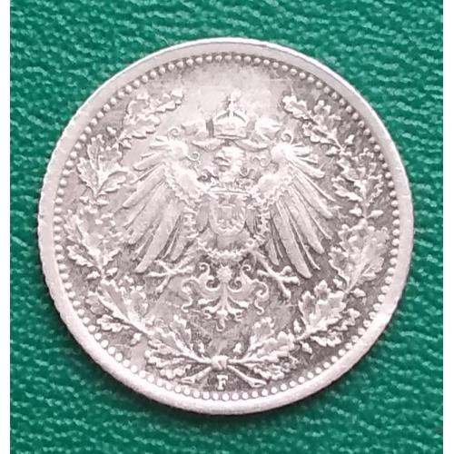 ОригіналГермания ½ марки, 1918 г, "F" - Штутгарт, серебро