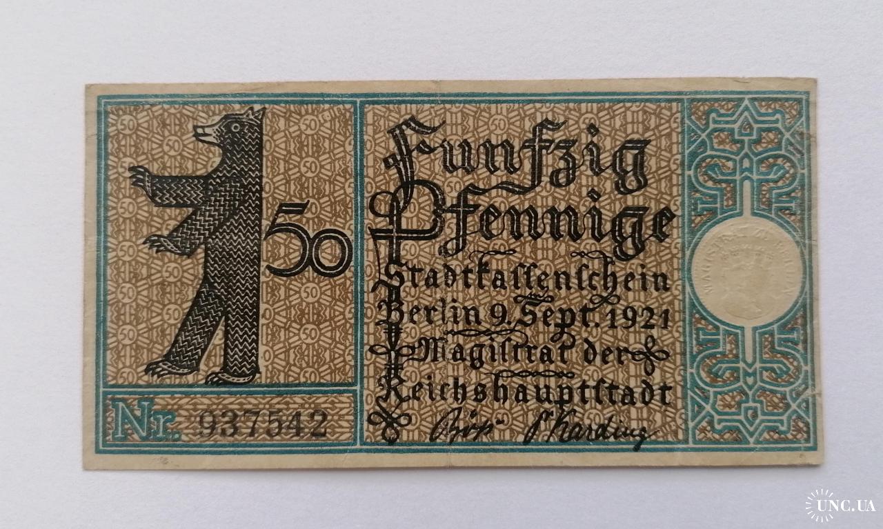наявний50 пфеннигов 1921г.
