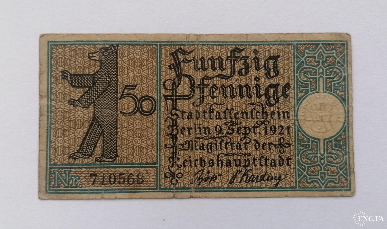 наявний50 пфеннигов 1921г.