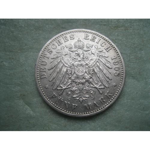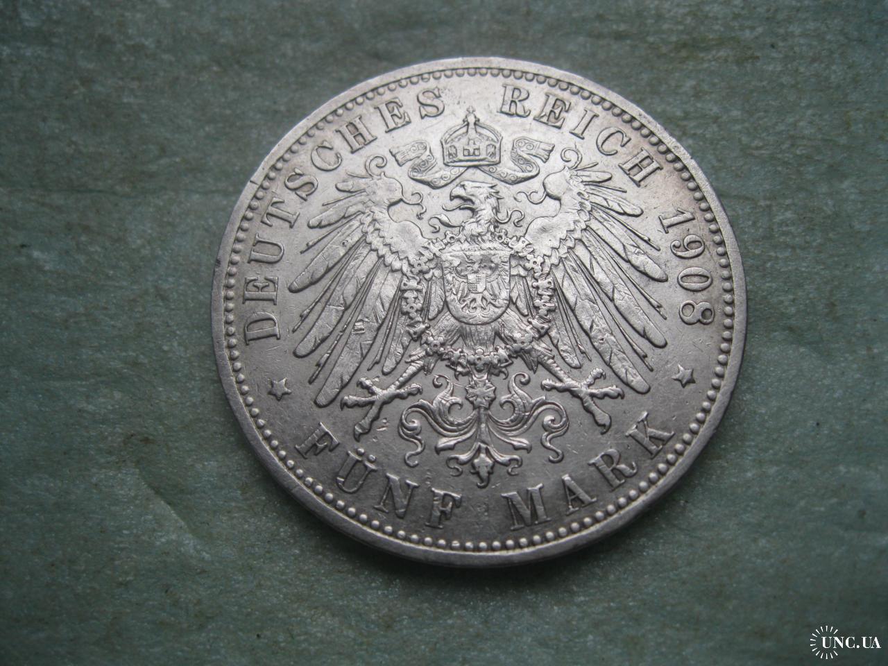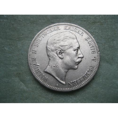 Состояние по фото Монета имеет красивый гурт. Германская империя .Пруссия.5 марок 1908 А . Вильгельм-2 .Оригинал..Серебро. Отличный сохран !