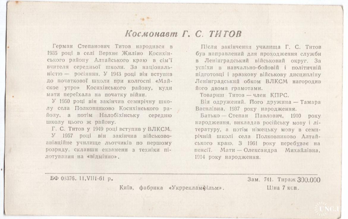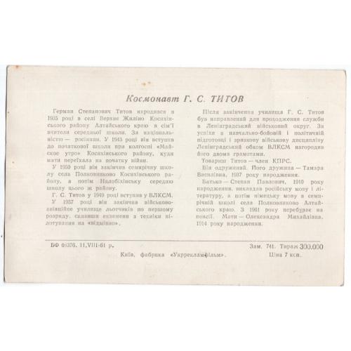 Герой Советского Союза Титов Герман Степанович летчик-космонавт 11.08.1961 Укррекламфильм в25-01