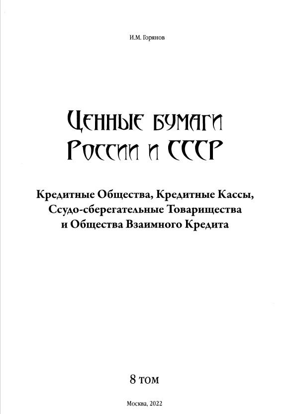 Горянов И.М. Том 8. Кредитные общества, Кассы, Ссудно-сберегательные товарищества (2022)