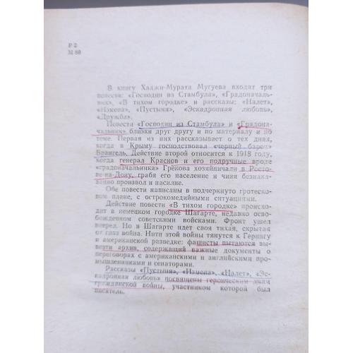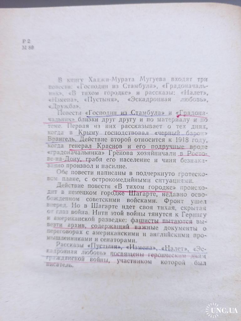 В книгу Хаджи-Мурата Мугуева входят три повести: "Господин из Стамбула", "Градоначальник", "В тихом городке" и рассказы: "Налет", "Измена", "Пустыня", "Эскадронная любовь", "Дружба".