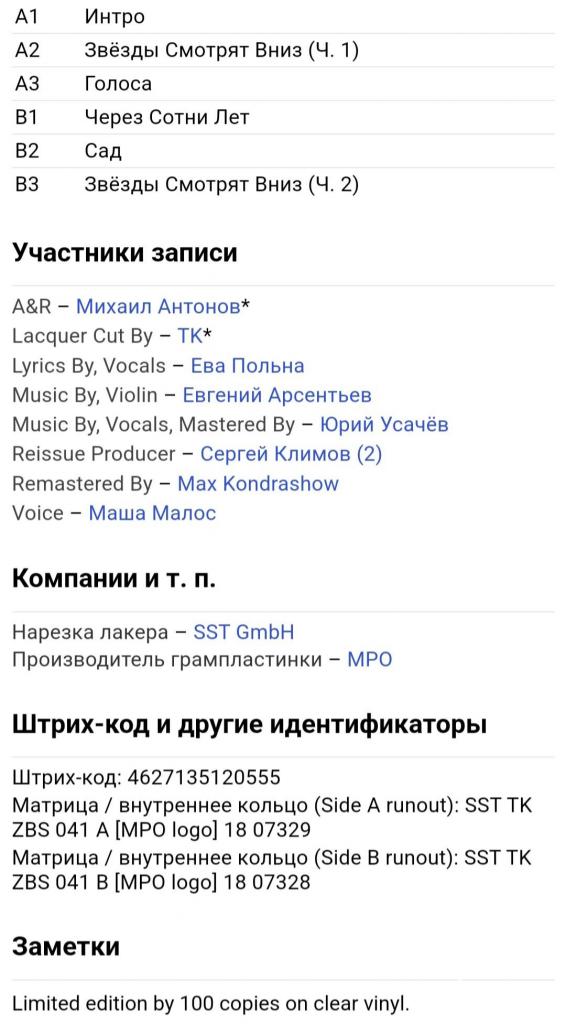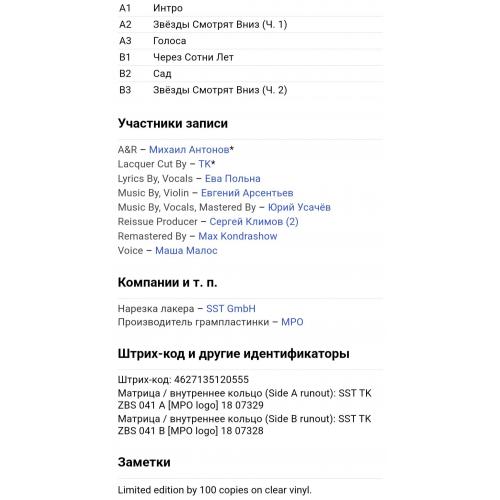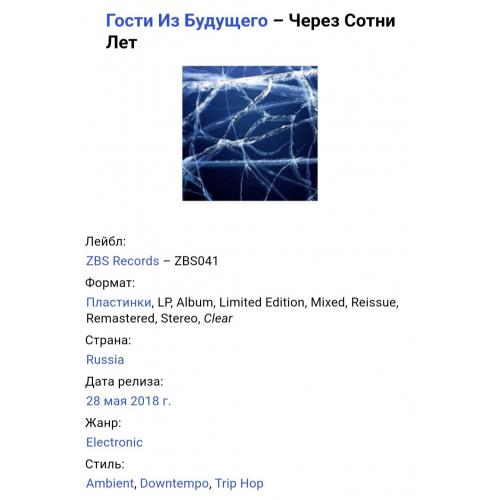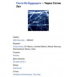 Вінілова платівка. Перший, дебютний, в дискографії, студійний, альбом російської електронік-поп, драм-енд-бейс групи Гости Из Будущего, яка складалась з учасників Юрія Усачова, Євгенія Арсентьєва та Єви Польної (Через Сотни Лет) 1997. Випуск фірми (ZBS Records) Russia, 2018-ий рік. Прозорий вініл (Clear Vinyl). Лімітований тираж (Limited Edition) 100 копій. Видання нове, запаковане. Категорія S/S. Відправка по Україні службами доставки: Нова Пошта, Укр Пошта, Делівері. Також відправляємо посилки за кордон по цілому світу.