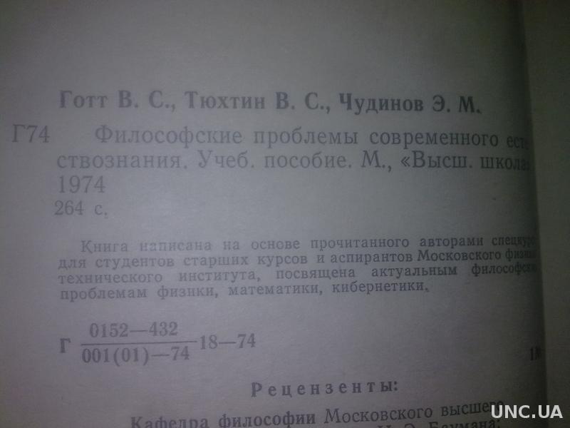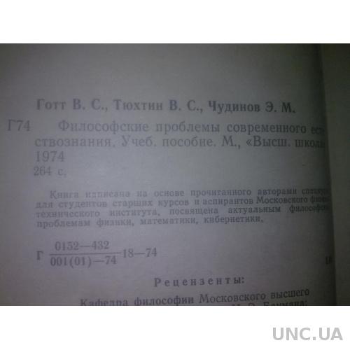 Готт, Тюхтин, Чудинов. Философские проблемы современного естествознания. Высшая школа. 1974 год.