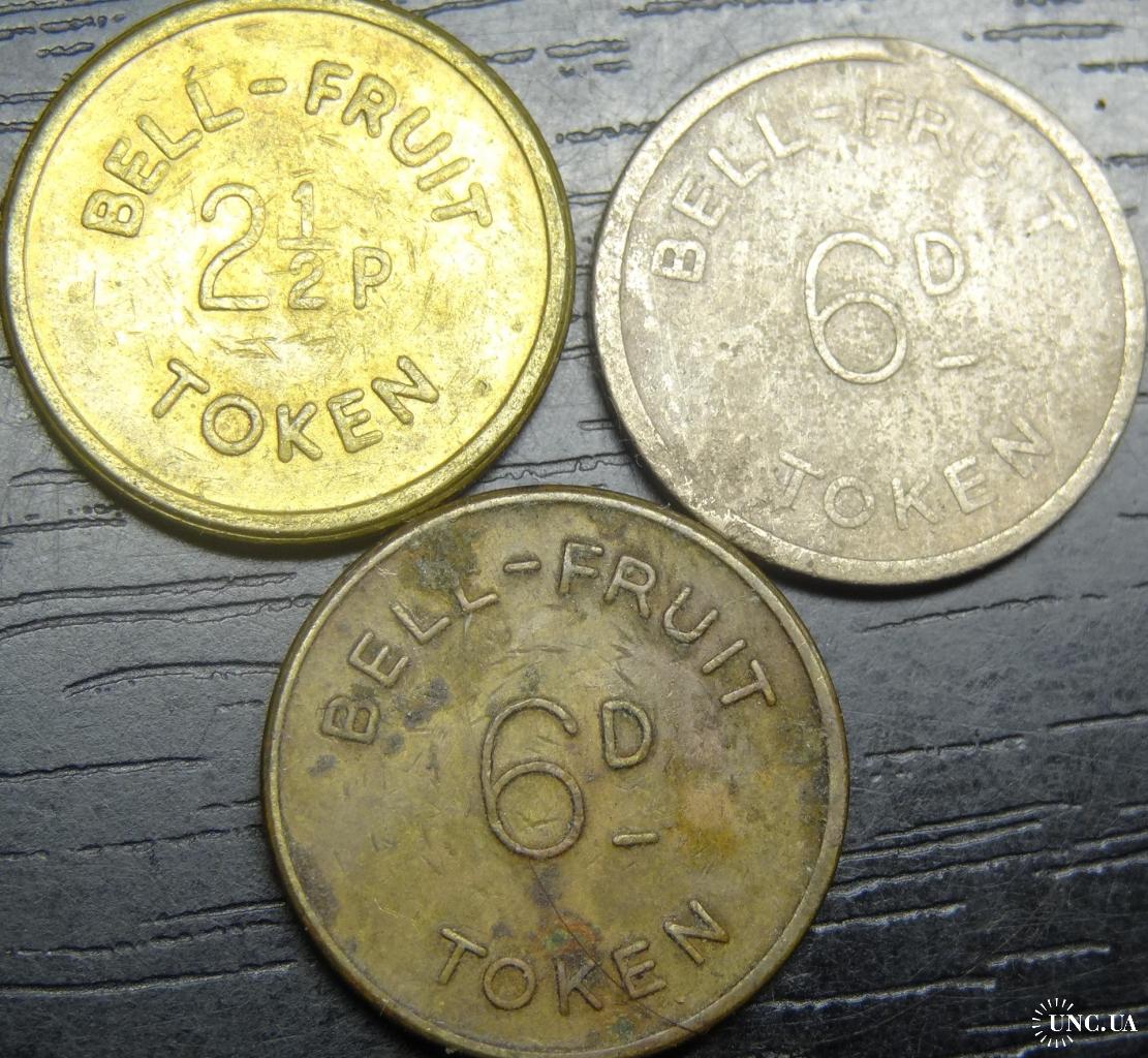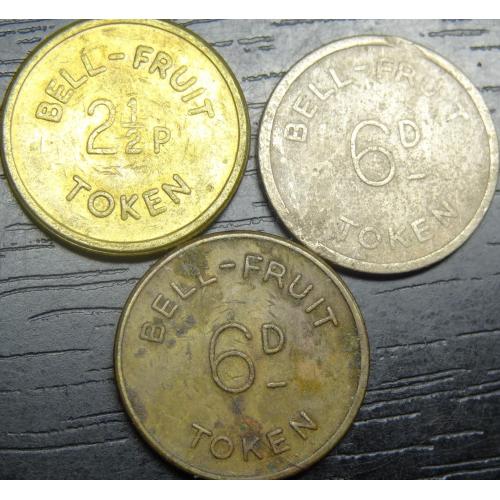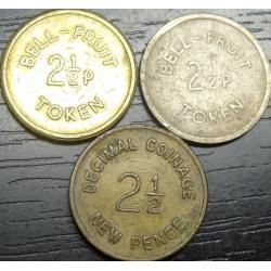 Game token 2½ Pence - Bell-Fruit Token (different kinds) / Гральний жетон Bell-Fruit 2 1/2 пенса (три різновиди)