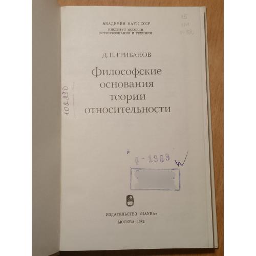 Грибанов. Философские основания теории относительности. Наука. 1982 год.