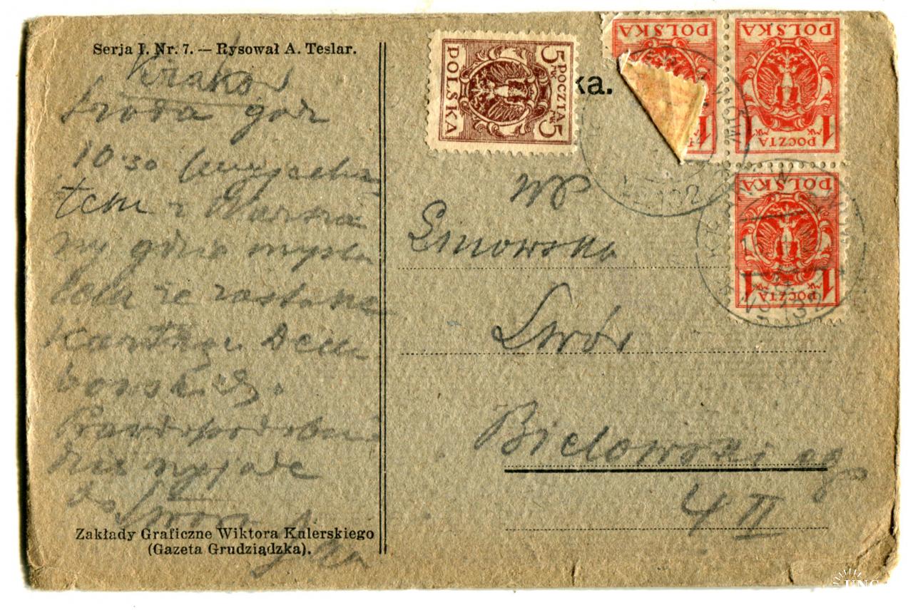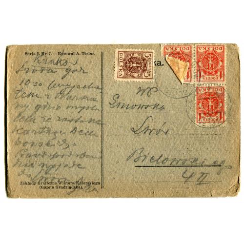 1921-1940Grudziadz. Spichlerzc nad Wila. Rysowal A. Teslar. Poland. Польша. Адресовано во Львов.
