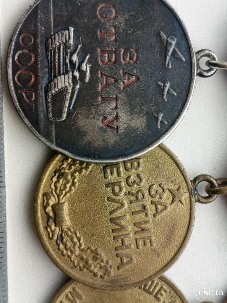 1941-1960Группа наград, на одной колодке ; ЗА ОТВАГУ номер 103283 , ЗА ВЗЯТИЕ БЕРЛИНА, ЗА ПОБЕДУ НАД ГЕРМАНИЕЙ