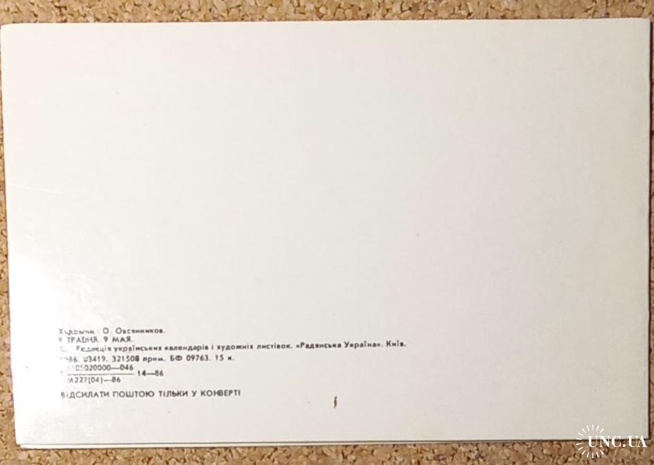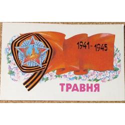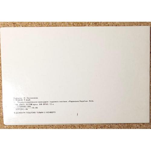 1981-2000На лицевой обложке изображен орден Победы на фоне Красного знамени и цветения весеннего сада. На развороте поздравительный рукописный текст. Карточка изготовлена на матовой мелованной бумаге с блинтовым тиснением и нанесением золотистой фольги. Издана Редакцией украинских календарей и художественных открыток «Радянська Україна». Киев. Тираж 321 500 экз. Карточка без дефектов. Состояние отличное.